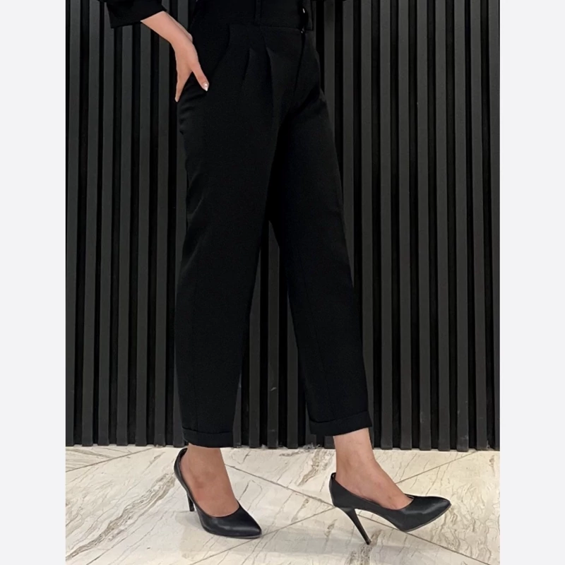 قسمت گودی کمرش کش دارد زیپ دارد رنگش مشکیه و اصلا بور نیس قد 95